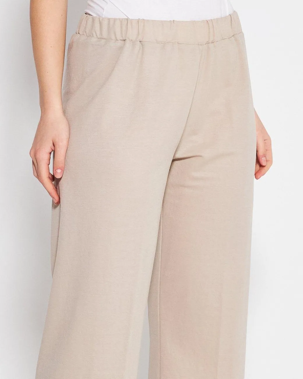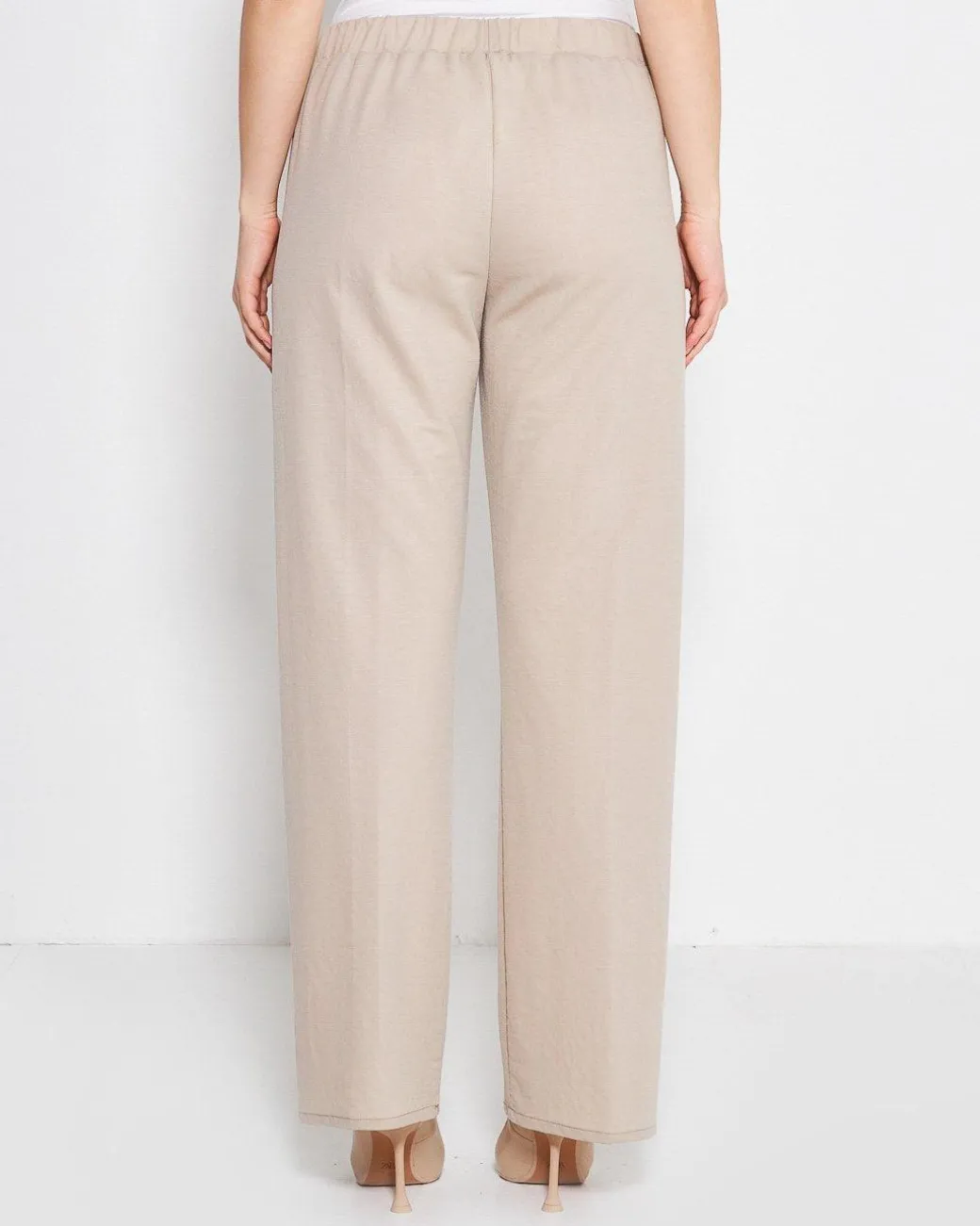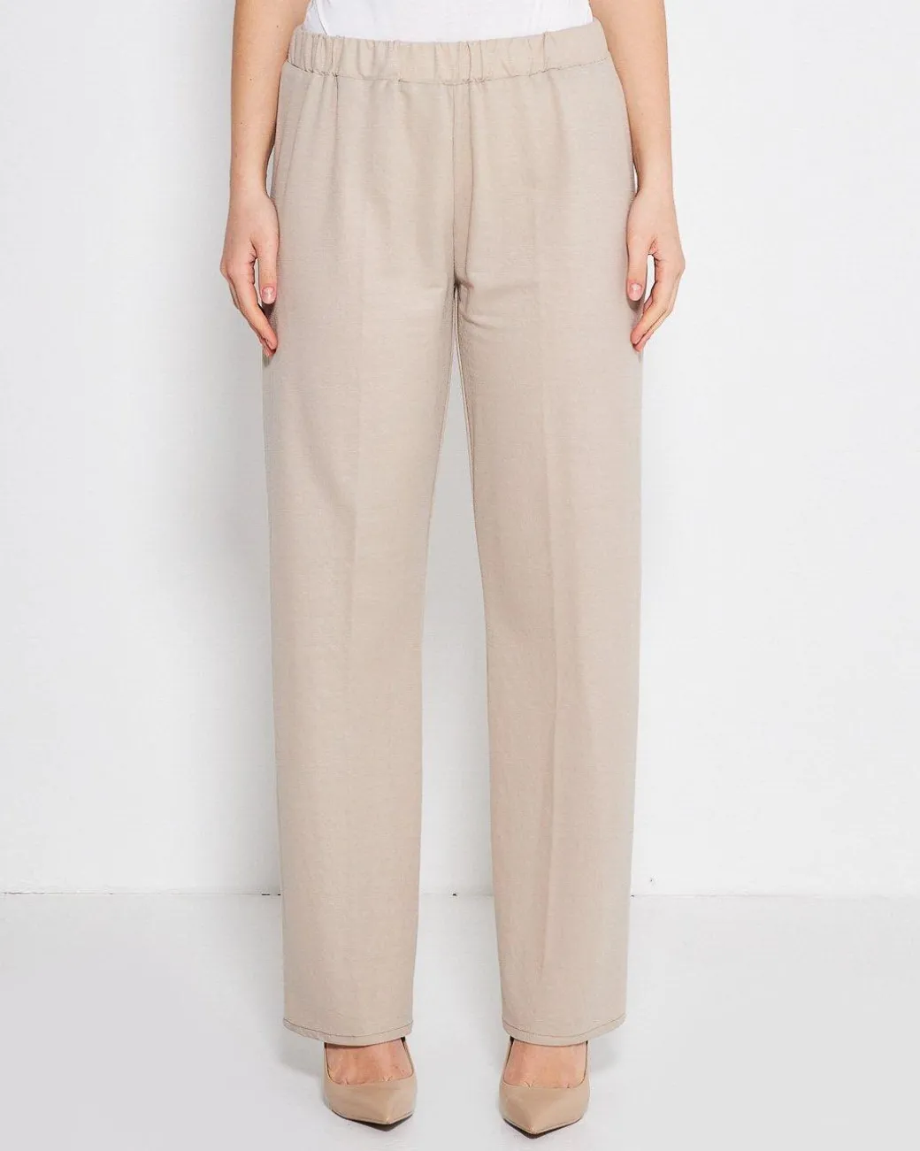 Pantapalazzo con bustino elastico in tessuto effetto lino. Logo cuore anteriore. Vestibilità comfort